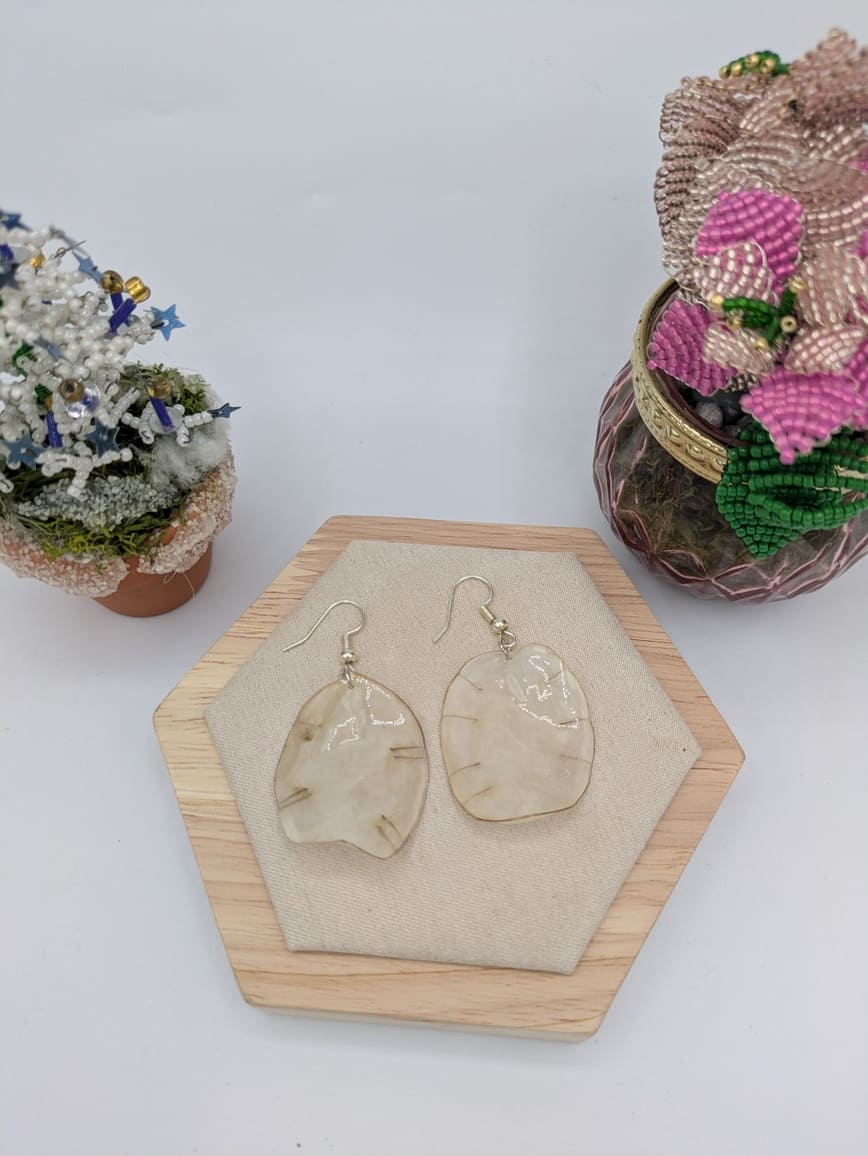 monnaie du pape séchée et résinée puis montée en boucle d'oreille , attache en acier inoxydable